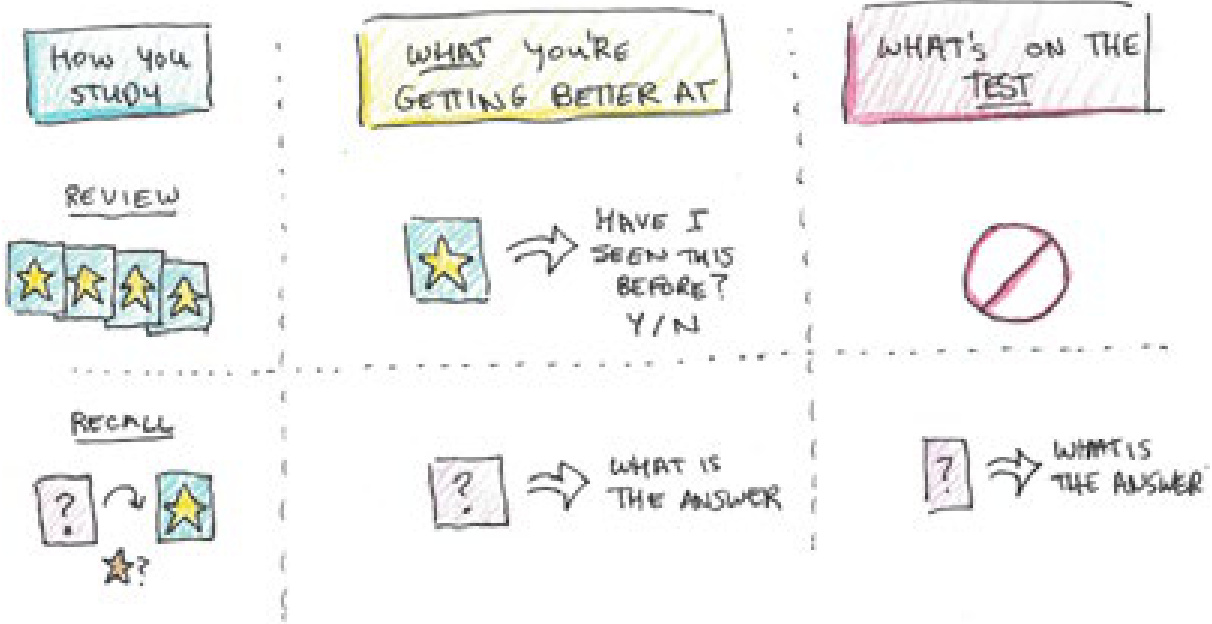 不过,这并不意味着重新阅读完全没有价值。当重新阅读与练习测试结合使用时,它是有用的。有选择地重新学习那些你无法回忆起来的概念,无疑是个好办法。
