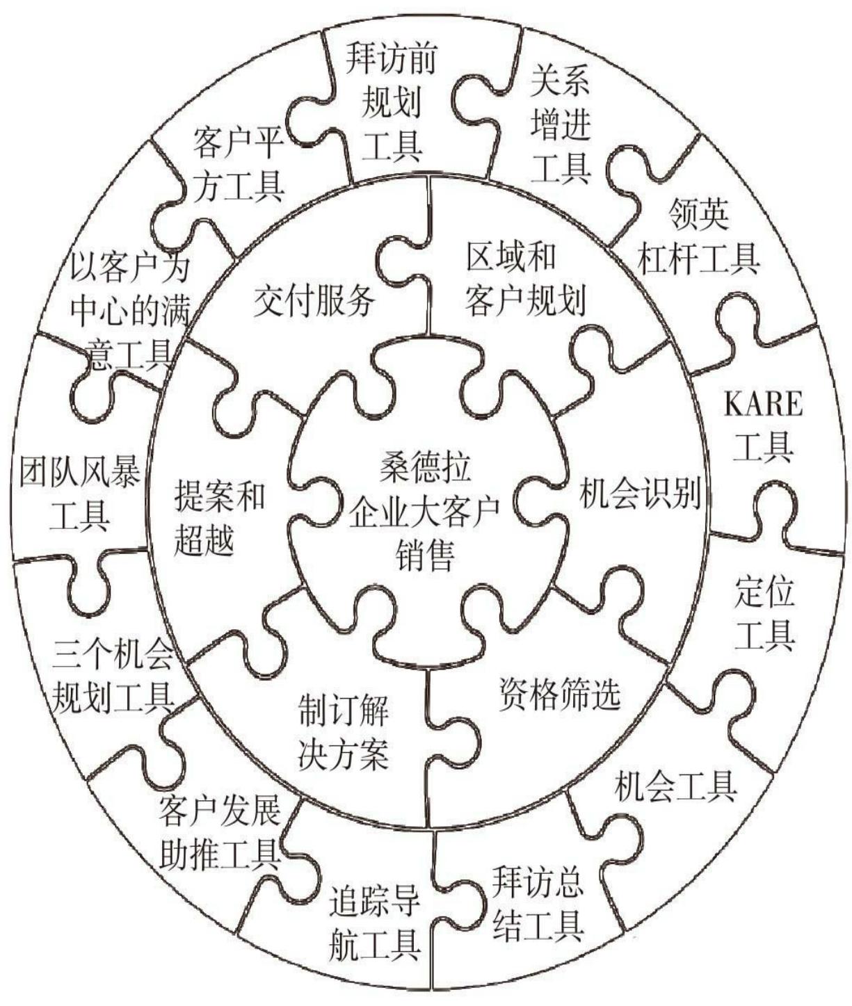 在桑德拉企业大客户销售的第一个阶段必须要详细地涵盖上述每一个步骤。区域规划是前四个步骤的重点。客户规划,即第五个步骤,主要关注个体客户。