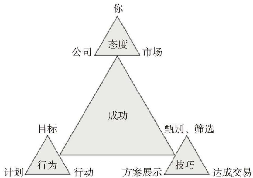 态度、行为和技巧是与桑德拉成功金三角相关的三个部分。要想获得成功,你必须同时发展这三个部分。例如,即便你拥有一个积极的态度,但如果这种积极态度不能转化为得到有效实施的计划,你也可能所获甚少或一事无成。出于同样的原因,即便你拥有最佳的行为规划,但没有好的态度支撑,没有必备的技能,那你注定会失败。而且,仅仅拥有技巧是走不远的,除非你还拥有乐观的取胜态度和适当的行为规划。