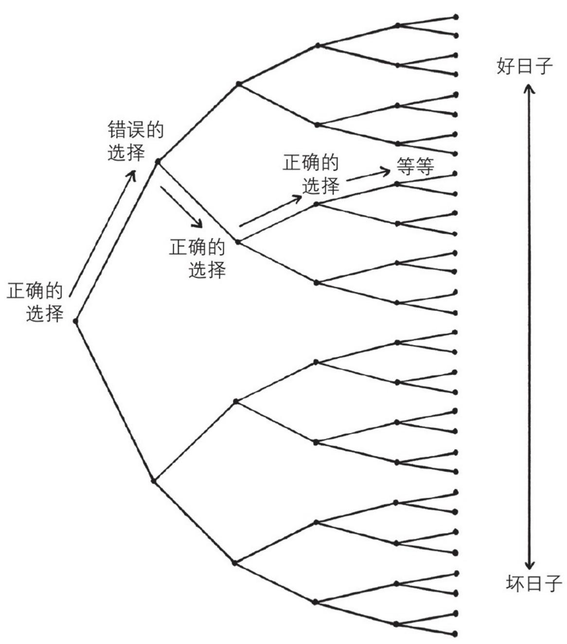 图 14:经历好日子还是坏日子通常取决于你在决定性时刻是否做出了有益的和健康的选择。每次选择都像是你站在一个岔路口,这些选择累积一整天后,最终会导致截然不同的结果