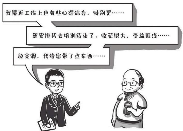还有,过完节、放完假、旅完游,你惦念着领导,给他带了点伴手礼,趁着没人的时间,借着送到办公室的机会, "顺便" 坐下来聊两句,也会比较自然 (见图 3- 1)。