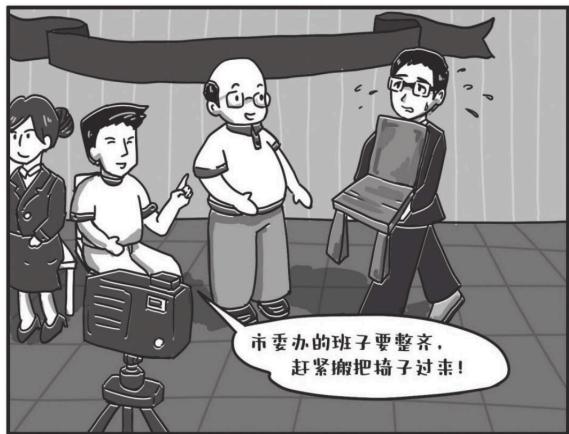 王副主任正打算回头找椅子,看见小蔡不知什么时候已经把一把椅子稳稳地放在了前排靠边的位置,王副主任赶紧过去坐定(见图 6- 2)。