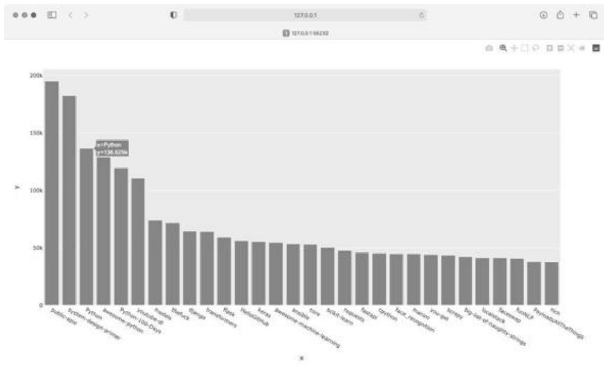 fig = px.bar(x=repo_links, y=stars, title=title, labels=labels, hover_name=hover_texts)