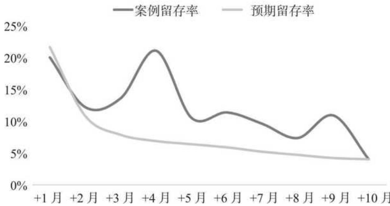 案例留存率和预期留存率趋势图 13-7 案例留存率和预期留存率趋势