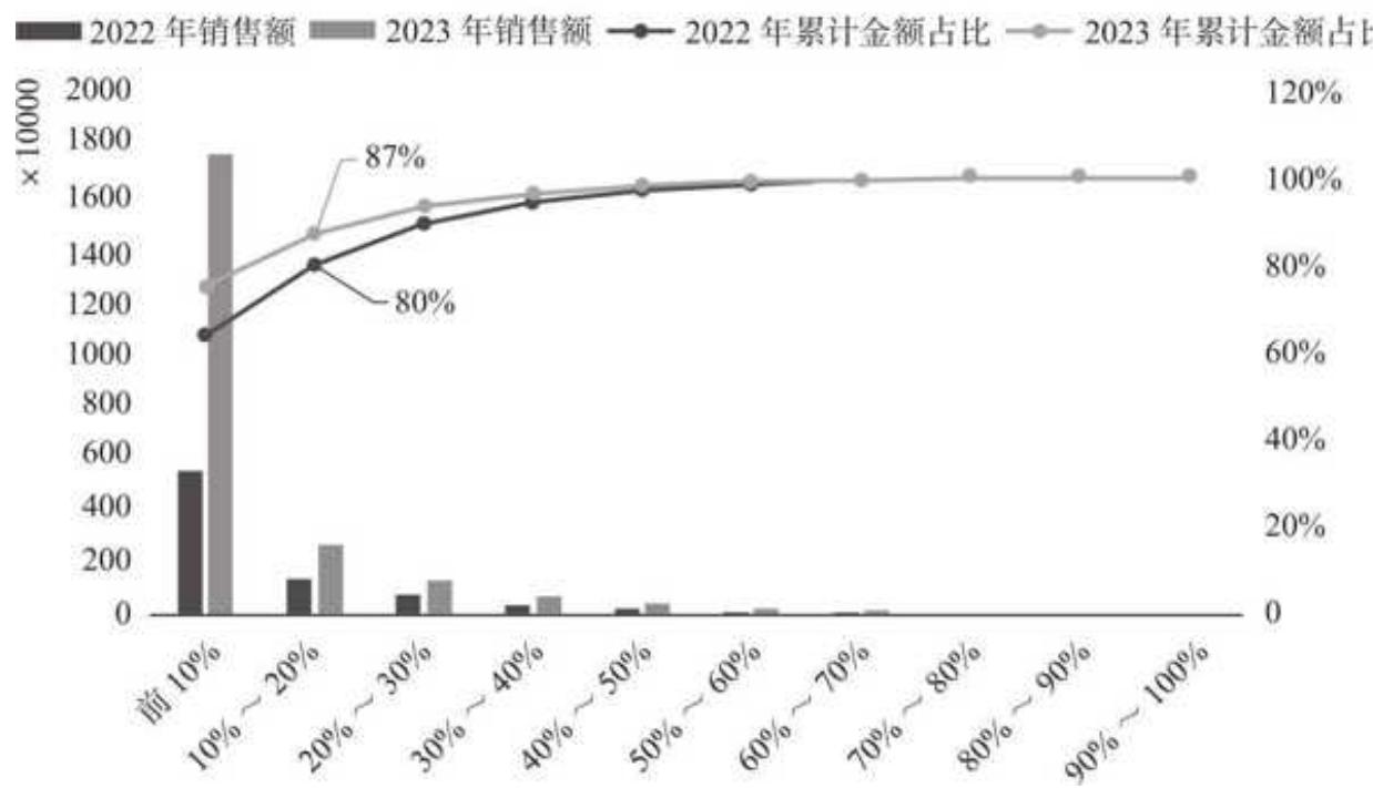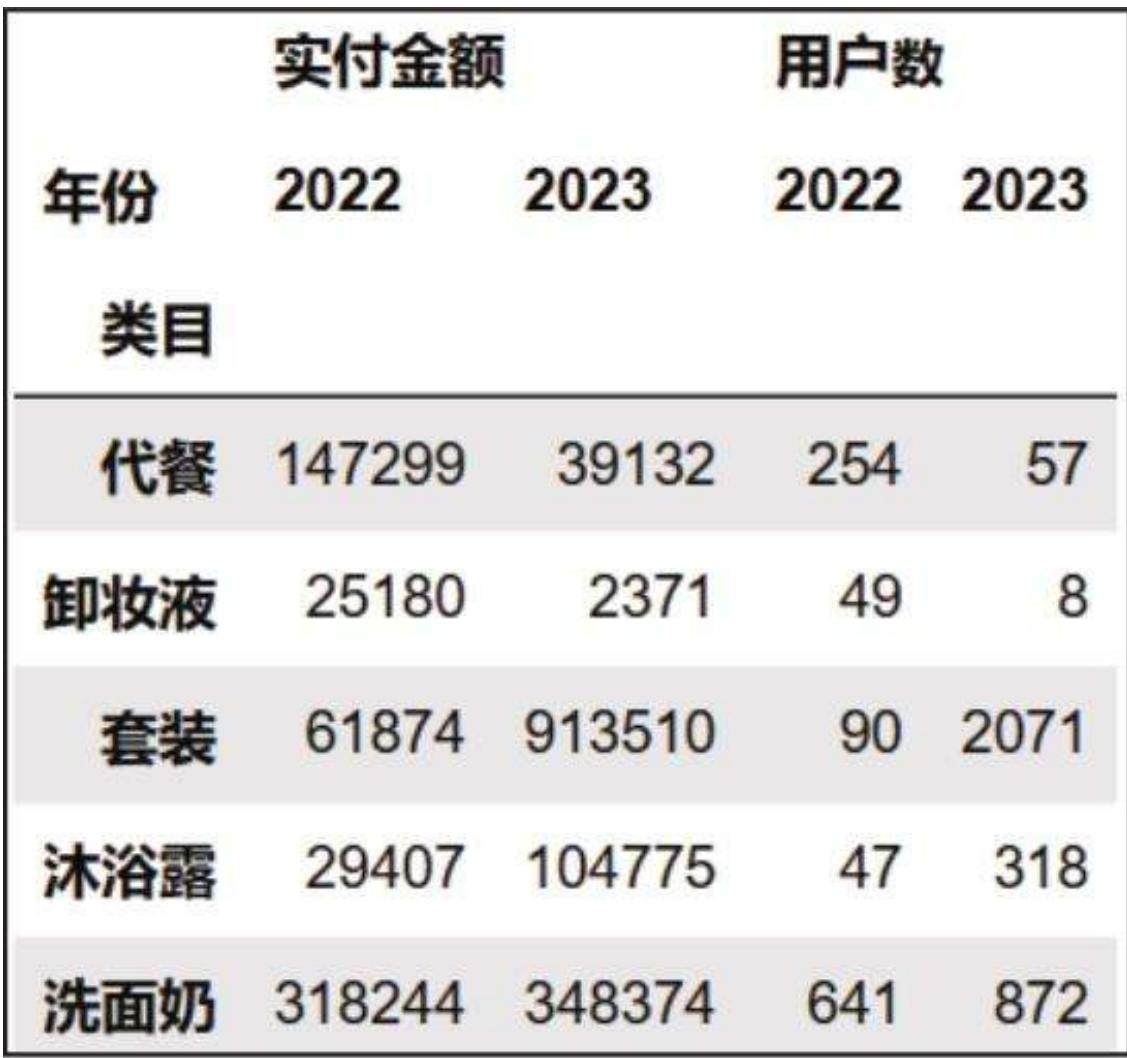 由于我们的分析主要聚焦在 2022 年和 2023 年,因此对于只出现在 2021 年的类目空缺值可以先不管。