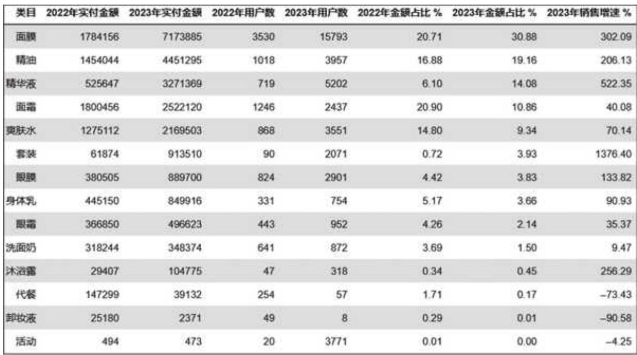 106 | 面膜 | 精华液 | {精华液, 面膜} | 23153 | 6806 | 1667 | 0.03 | 0.07 | 0.50 |