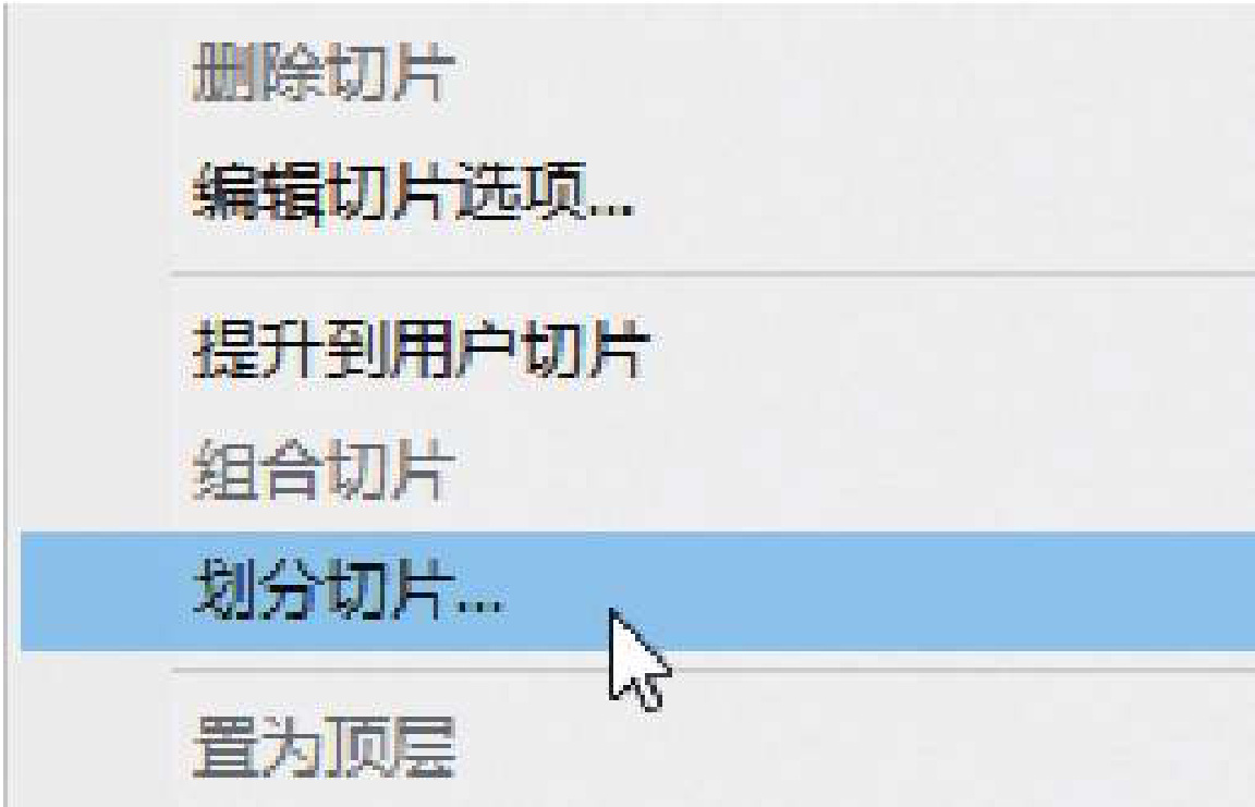 除了通过手动绘制切图,还可以在图像上右击,在弹出的快捷菜单中选择【划分切片】命令,如图 A 27-20 所示。