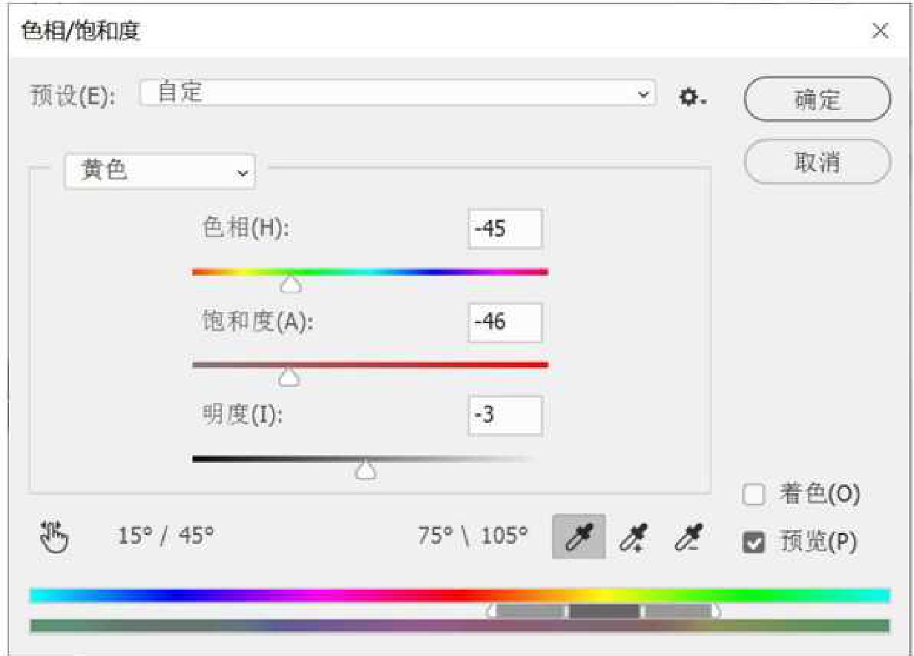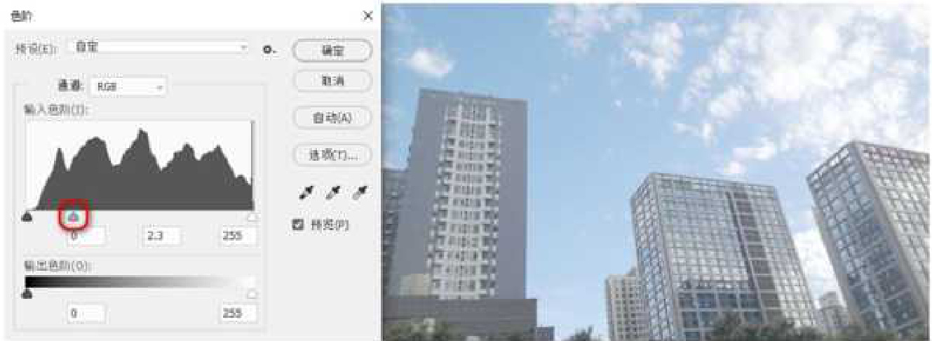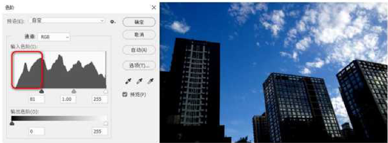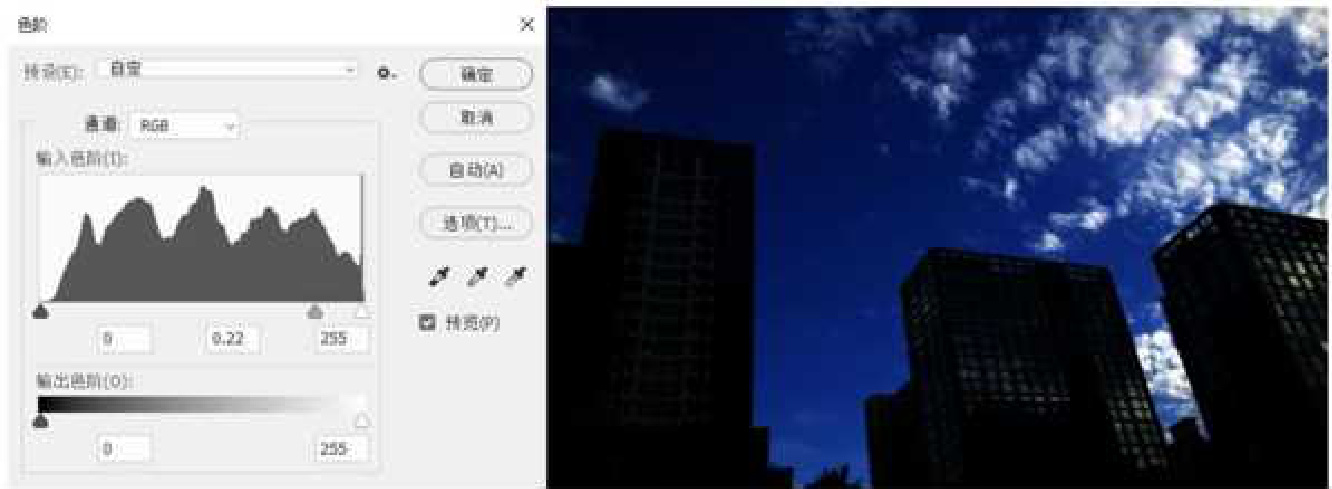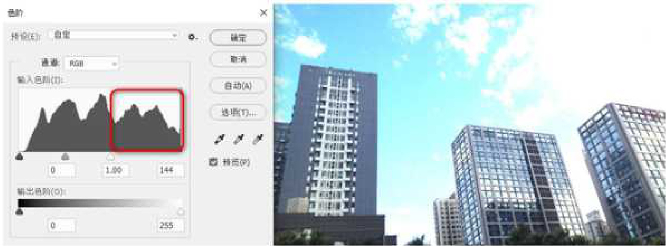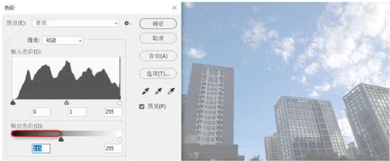 再执行【图像】-【调整】-【色阶】命令,将白场高光值设置为 45,如图 A 28-9 所示。