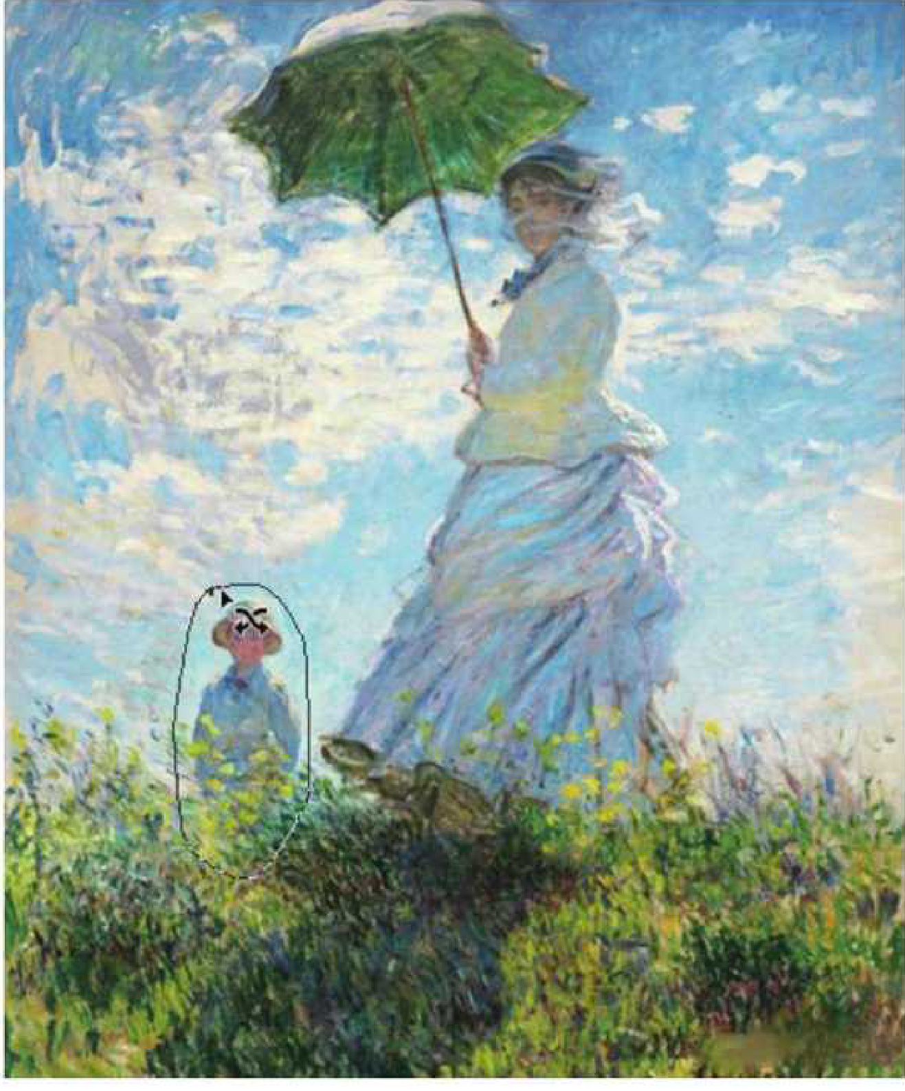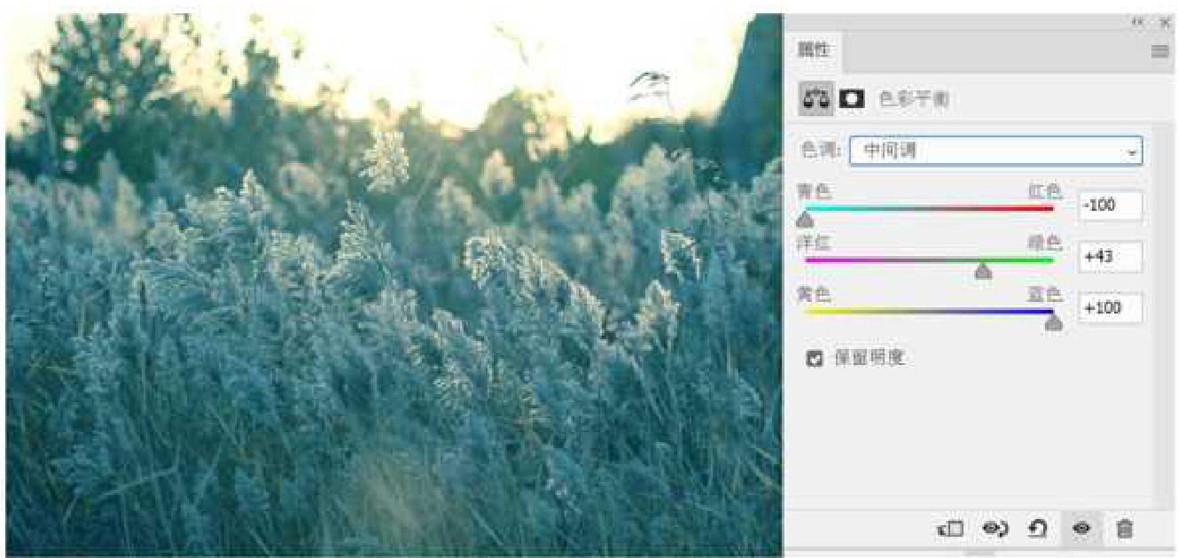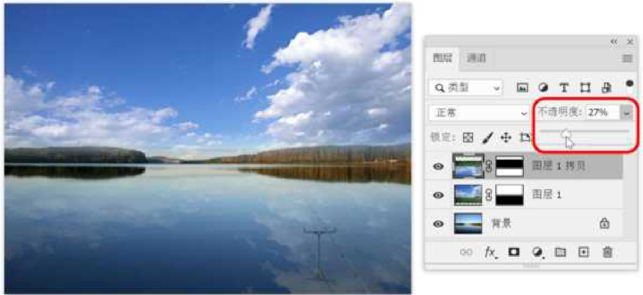 ●使用【裁剪工具】拖曳顶端和四边的中点修改画布大小,不但可以缩小画布,还可以扩大画布。选中【内容识别】复选框,当画布扩大完成时,Photoshop 会智能填充扩大的新内容,一般适合不太复杂的边缘,如天空、水面等,而不适合边缘有人物、文字等内容的复杂边缘。