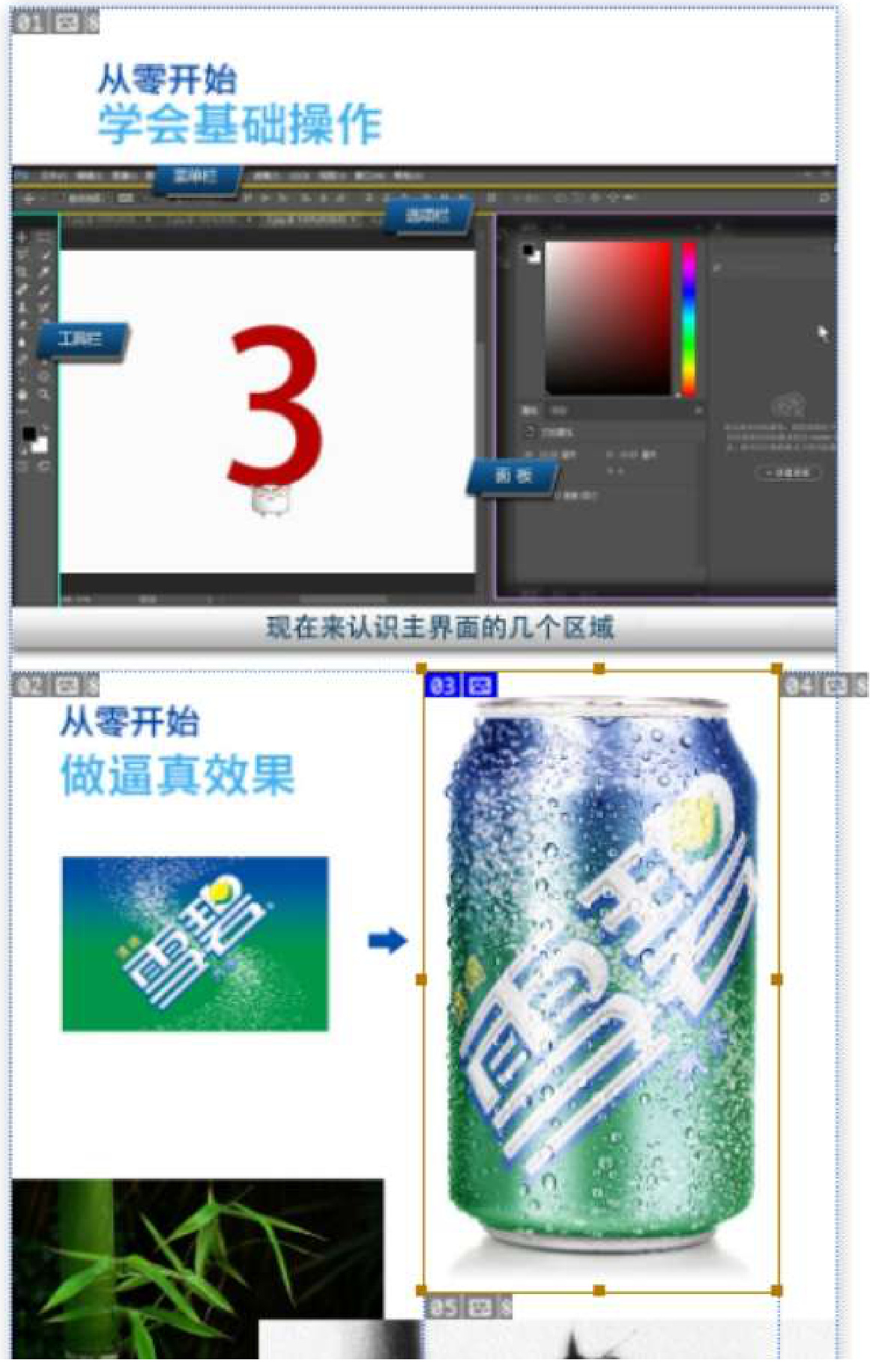 你可以使用【切片工具】创建切片,还可以基于参考线和图层创建切片。本课讲述的是使用【切片工具】创建切片的相关操作。