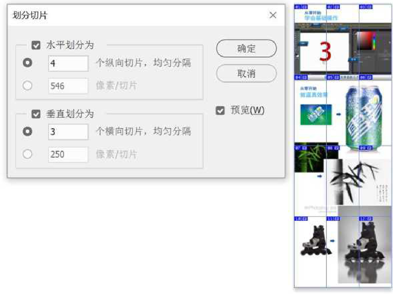 通过【划分切片】功能,图片被平均划分出网格状效果,如图 A 27-21 所示。