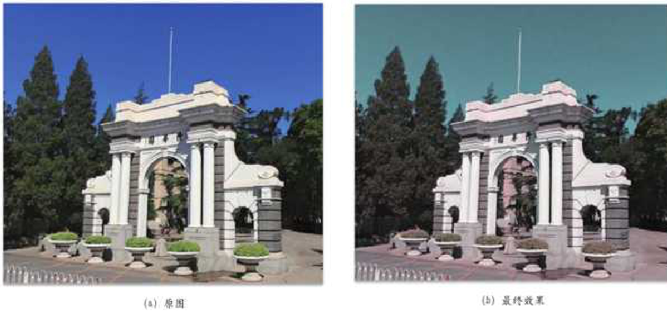 记录好的动作就好像是流水线上的程序一样,换一张其他的图片,选择【动作 1】,单击【播放动作】按钮,照样可以套用这个动作,快速做出类似的效果,如图 A 28-12 所示。