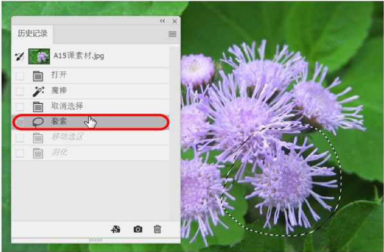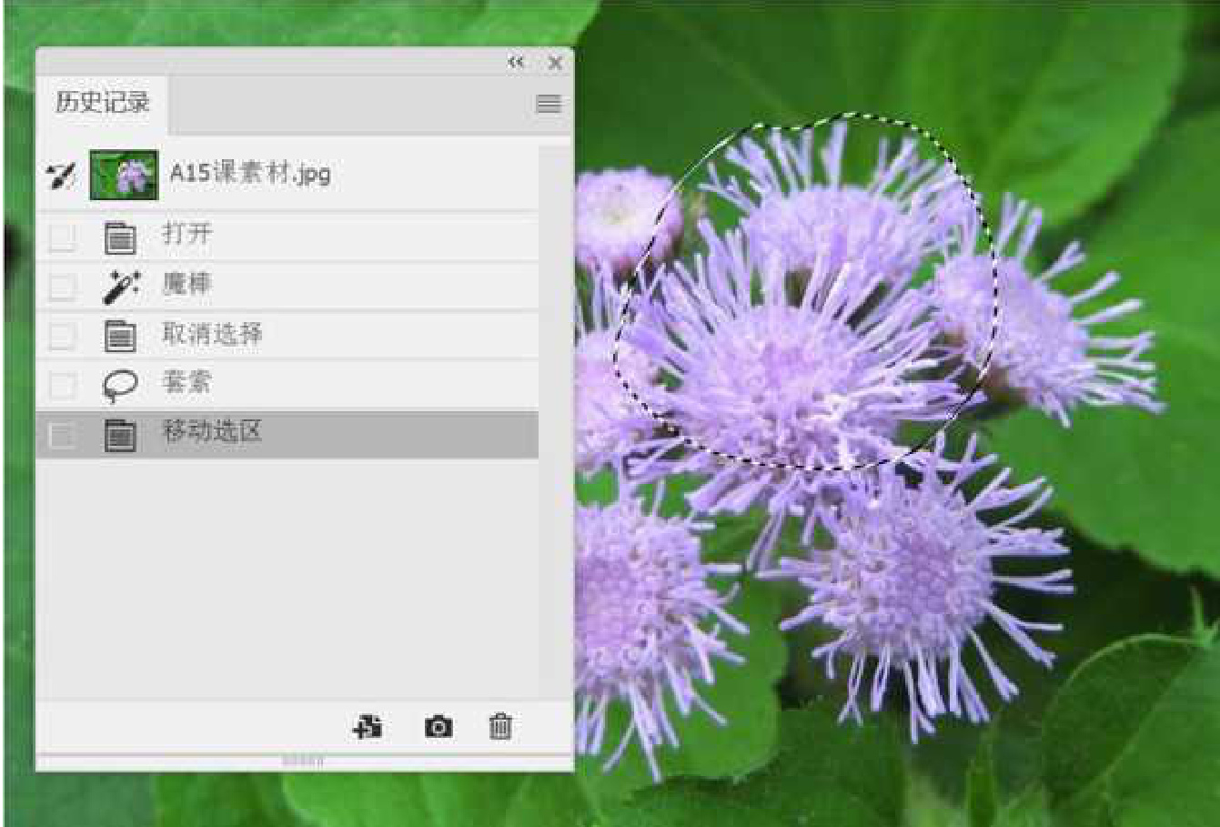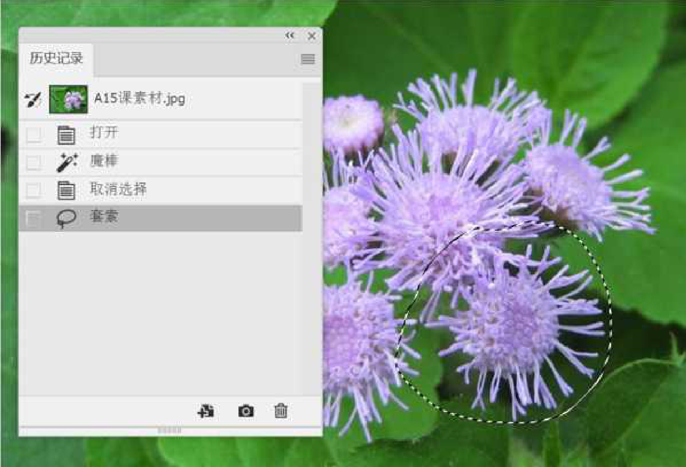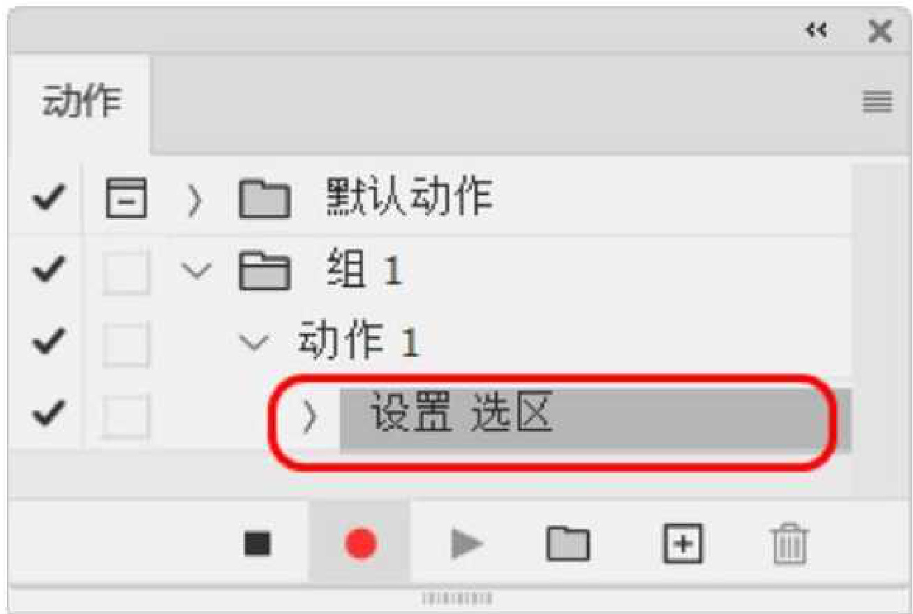 【动作】面板中就会多出一条【设置选区】的动作记录,如图 A 28-7 所示。