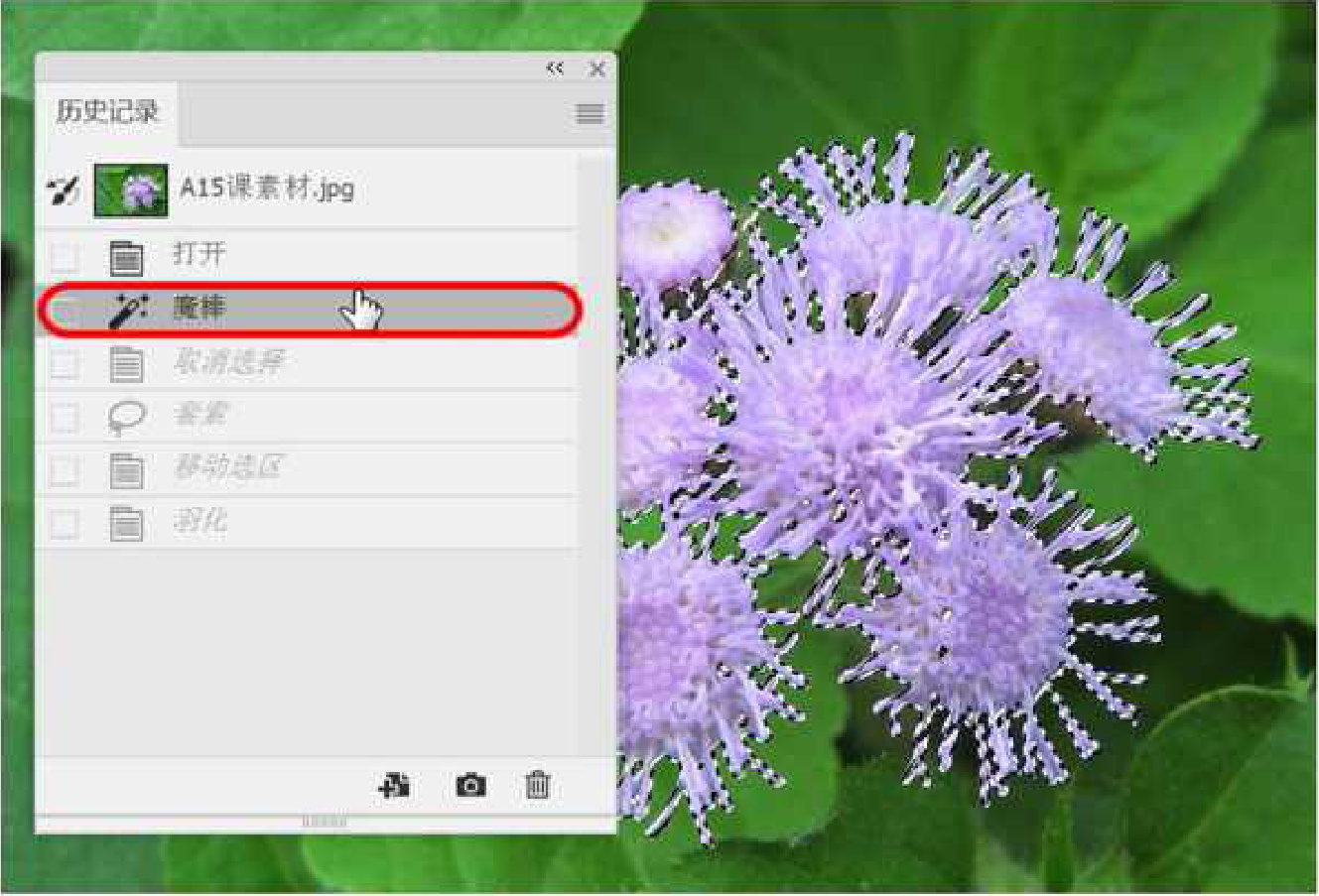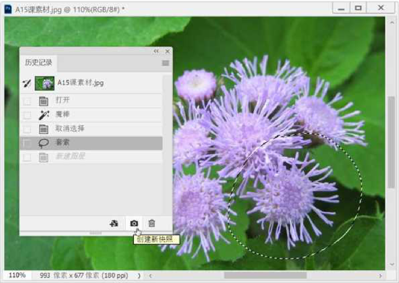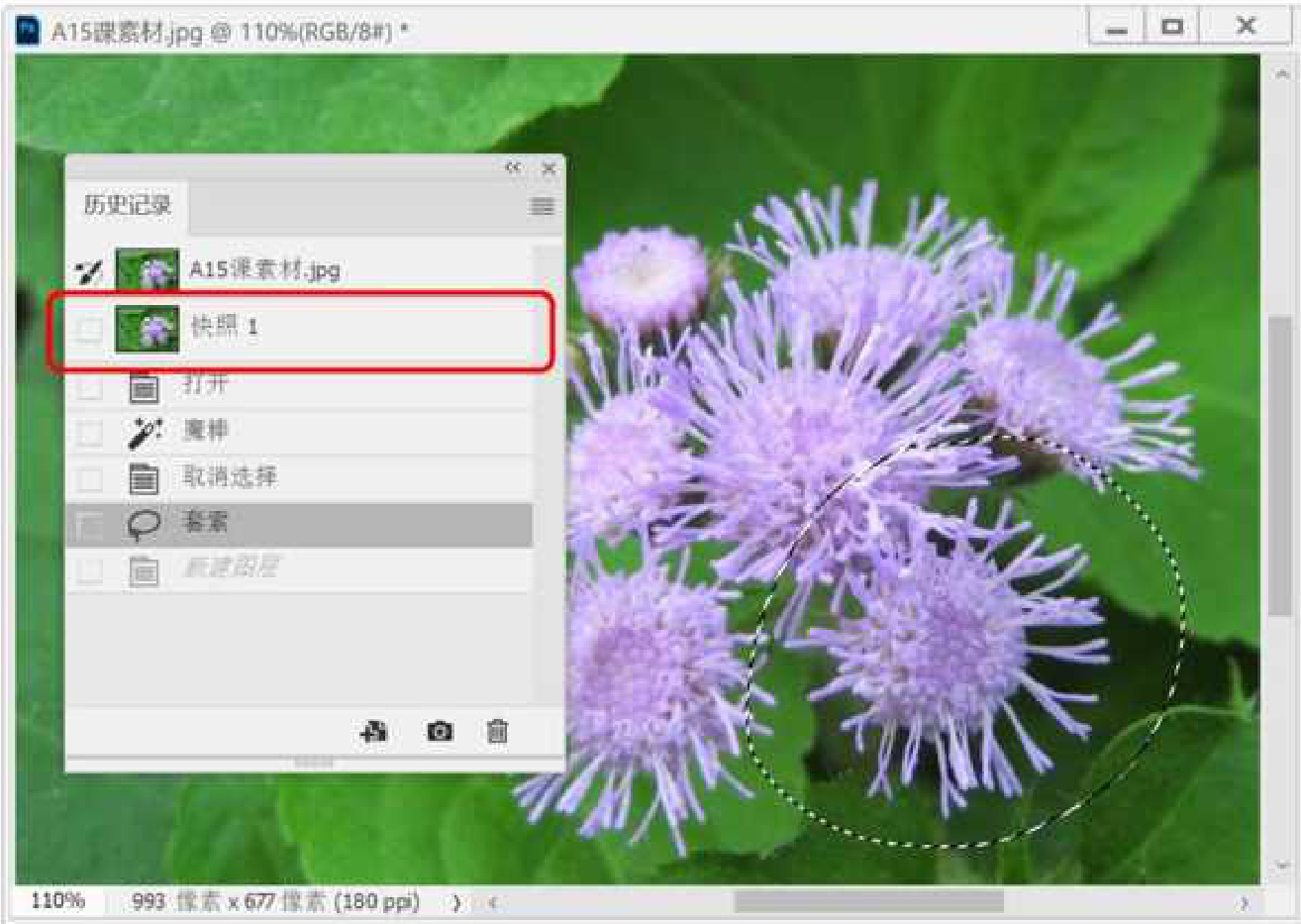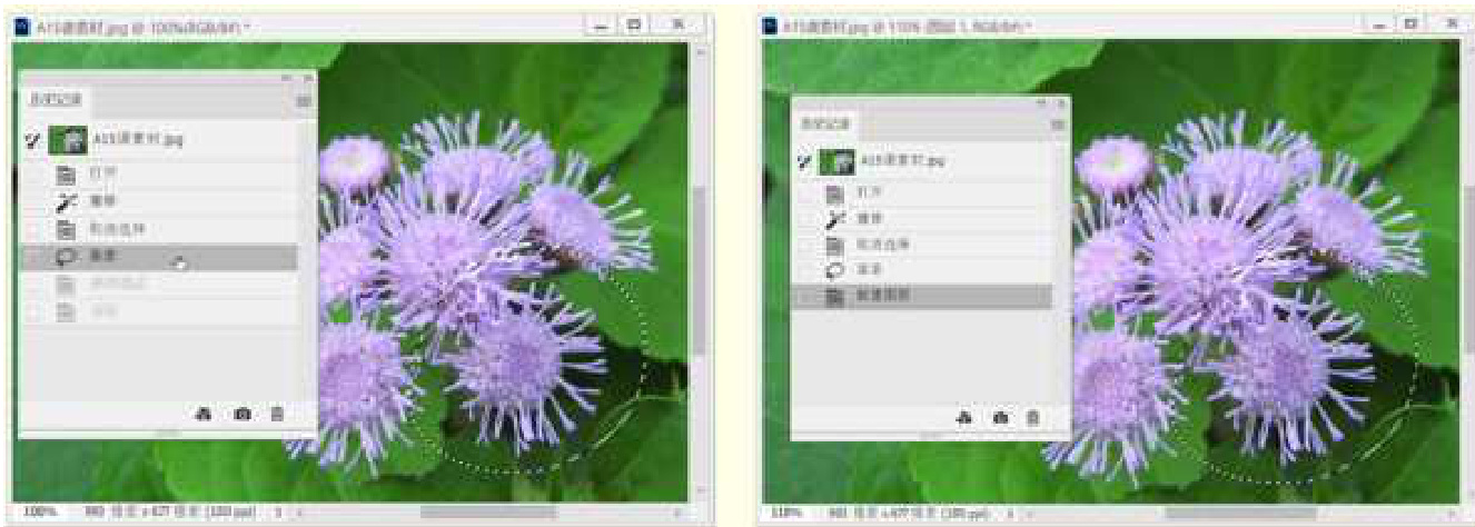 【动作】面板中就会多出一条【设置选区】的动作记录,如图 A 28-7 所示。