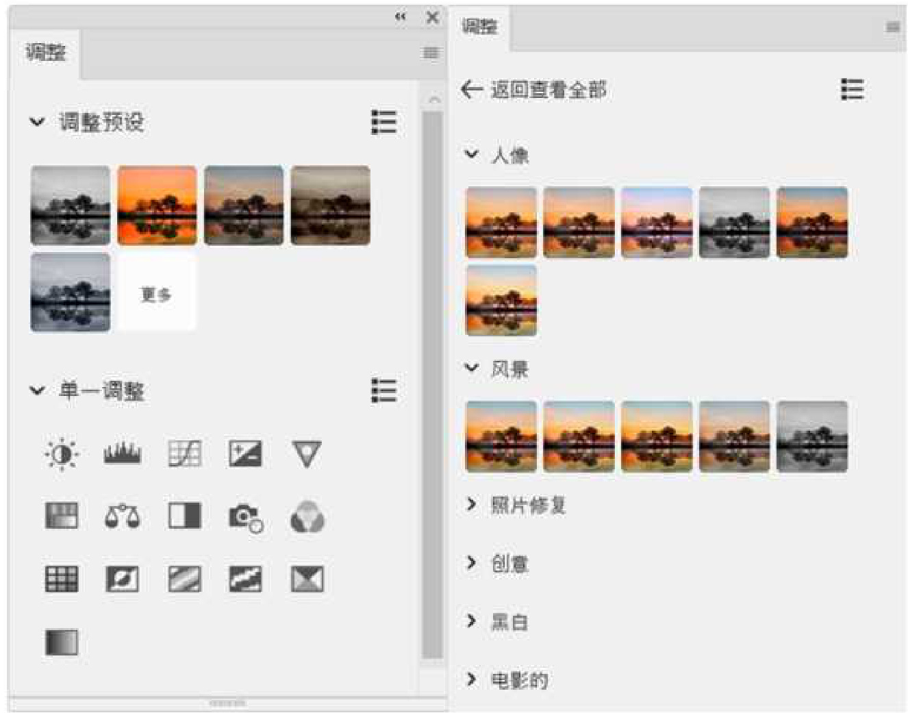 面板并不是固定不变的,可以通过拖曳或双击,将它们随意地移动、展开、收起、整合、拆分、放大、缩小等,如图A03-13所示。另外,它们都具有边缘吸附功能,如果拖曳面板至Photoshop文档区域或者其他面板的边缘处,面板会自动吸附至边缘,这样面板整合工作就变得很简单了。