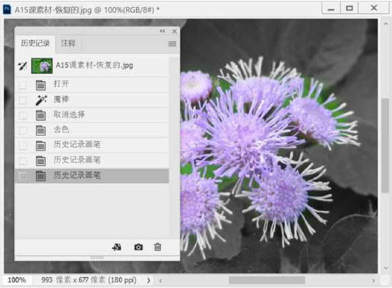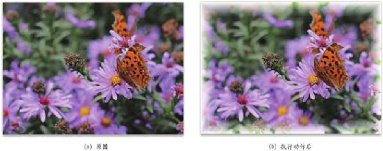 在【窗口】菜单中选择【动作】命令以打开【动作】面板,快捷键为 Alt+F 9,可以在该面板上看到 Photoshop 自带的默认动作。例如,选择【木质画框-50 像素】这个动作(如果没有找到这个动作,随意选择其他动作也可以),单击面板下方的【播放动作】按钮 (见图 A 28-2),神奇的事情发生了,Photoshop 开始自动做起图来,一眨眼,图已经做好了,为图片加上了画框效果,如图 A 28-3 所示。