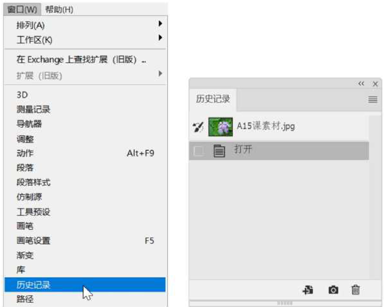 3D 测量记录 导航器 调整 动作 段落 段落样式 仿制源 工具预设 画笔 画笔设置 渐变 库 历史记录 | Alt+F9 |