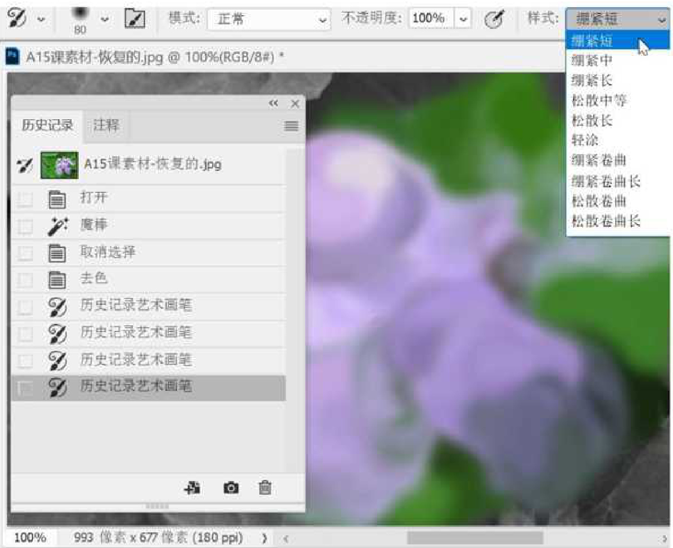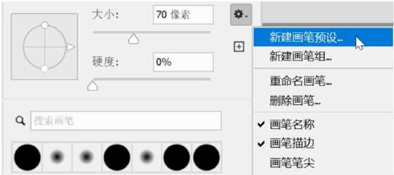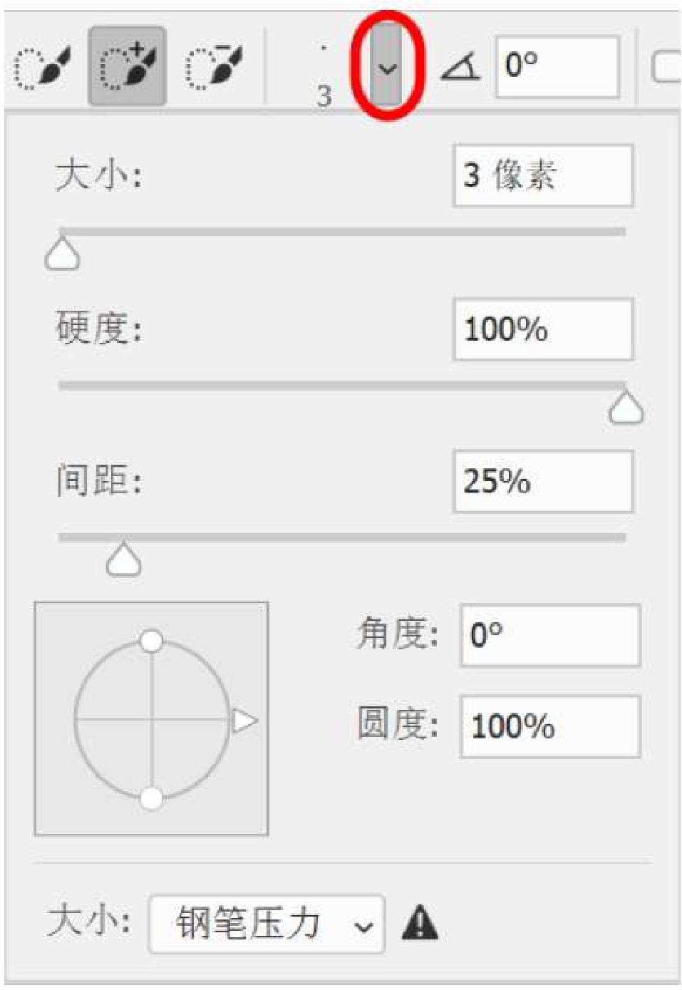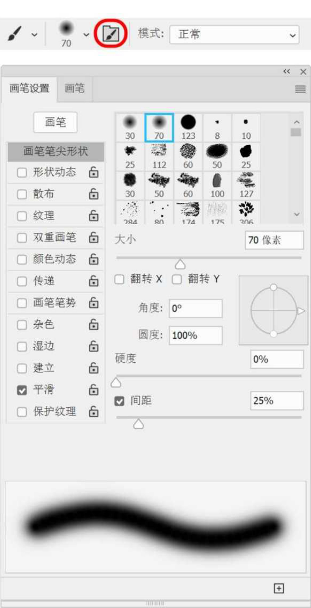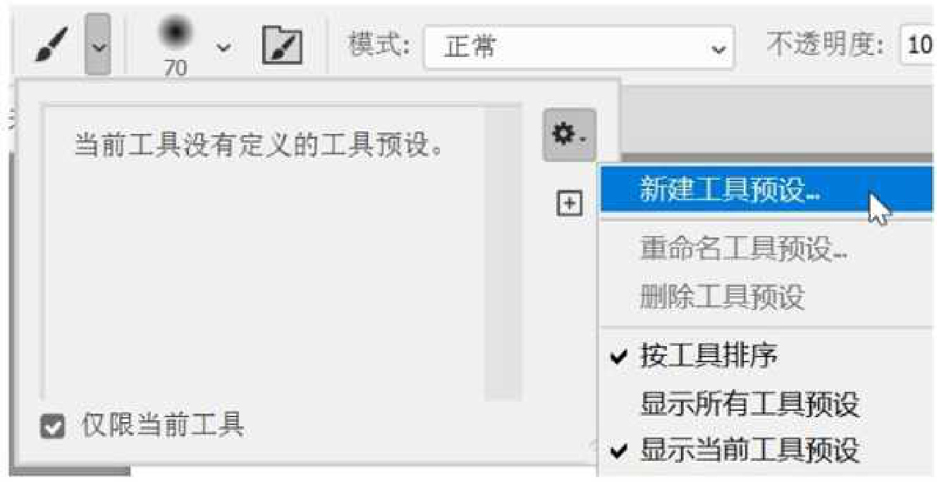 选项栏是调节工具参数的面板,例如,选择【画笔工具】后,可以在选项栏中调节画笔的大小、模式等,如图A03-4 所示。