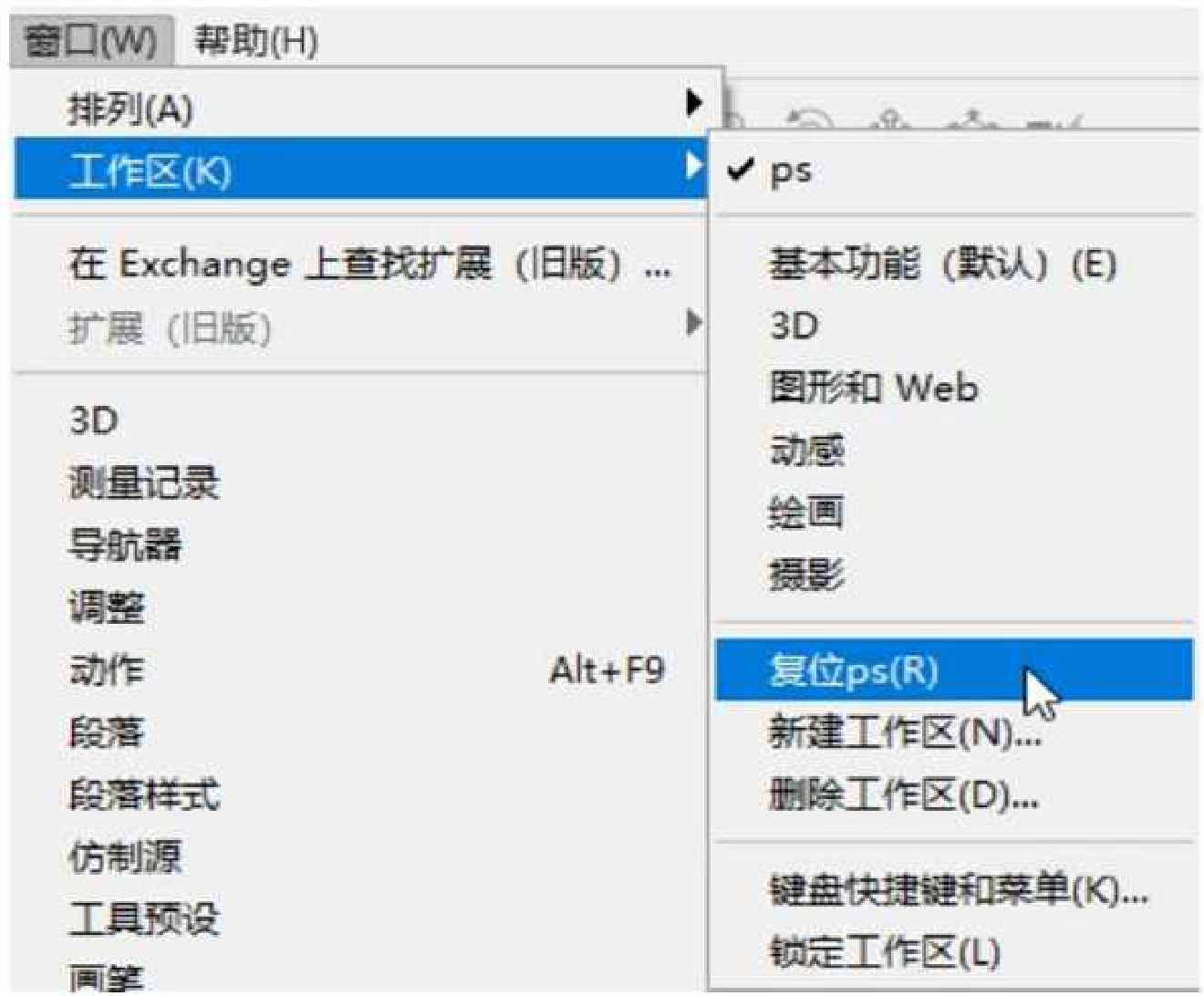 执行【窗口】-【工作区】-【复位基本功能】命令,如图A03-14所示,这样一下就复原啦!